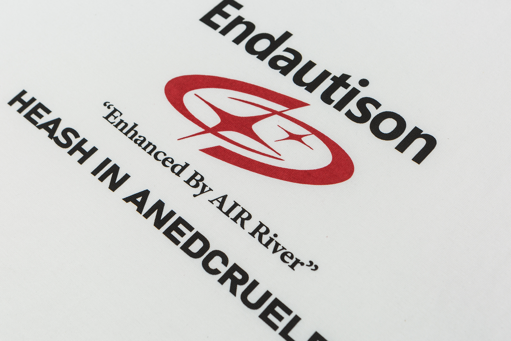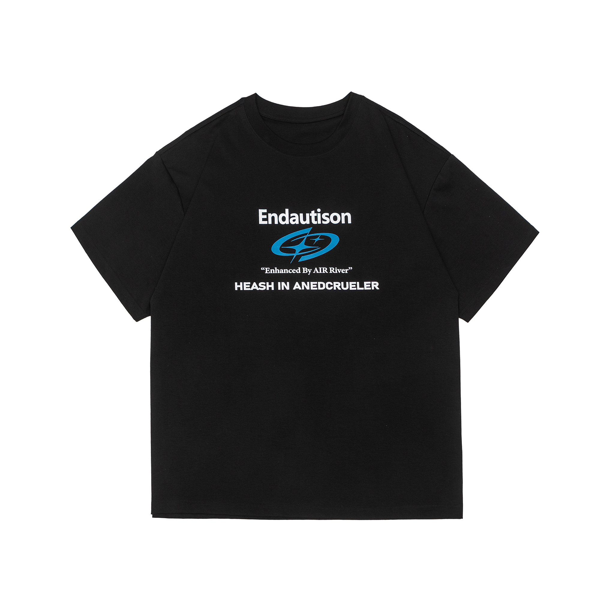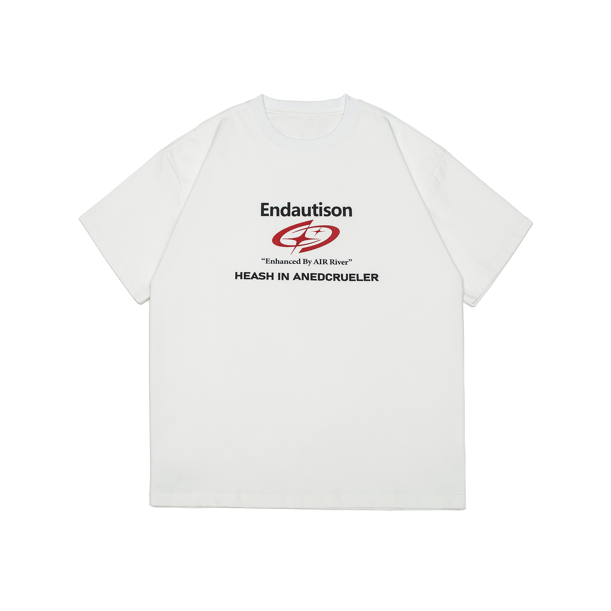 AIRRIVER Core Tee 採用極簡配色與未來感字體設計,搭配中間醒目的虛構標誌圖像,營造出如同虛擬品牌的科技氛圍。從 “Enhanced By AIR River” 的概念出發,結合數位視覺語彙與實驗性排版,讓這件T-shirt不只是一件衣服,更像是一個平行世界的身份代碼。